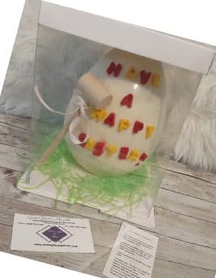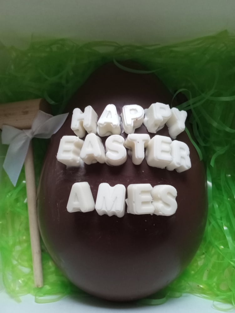 Breakable Easter egg comes filled with candy and can come in regular chocolate, white chocolate, twix, cookies and cream, or cinnamon toast crunch